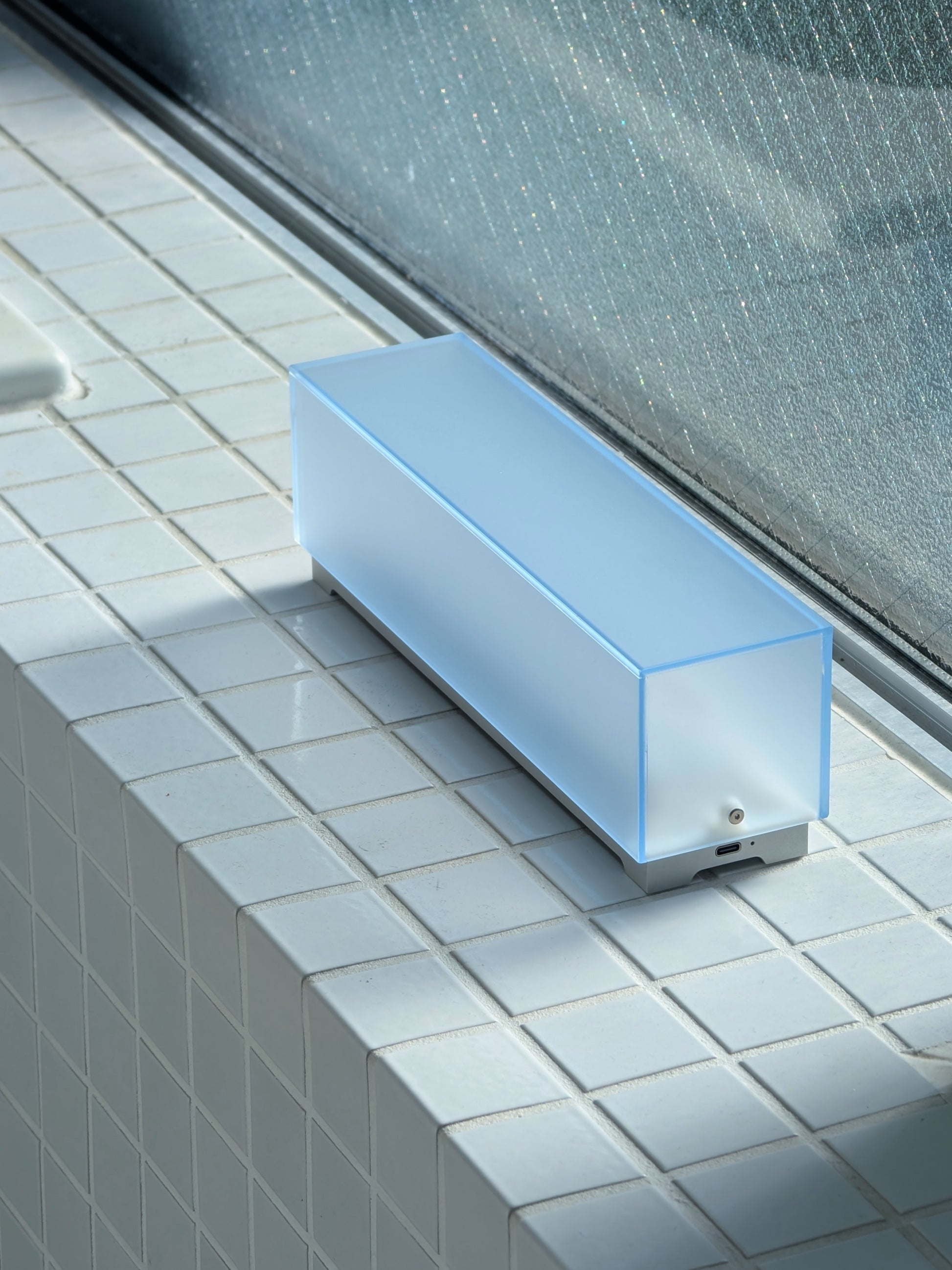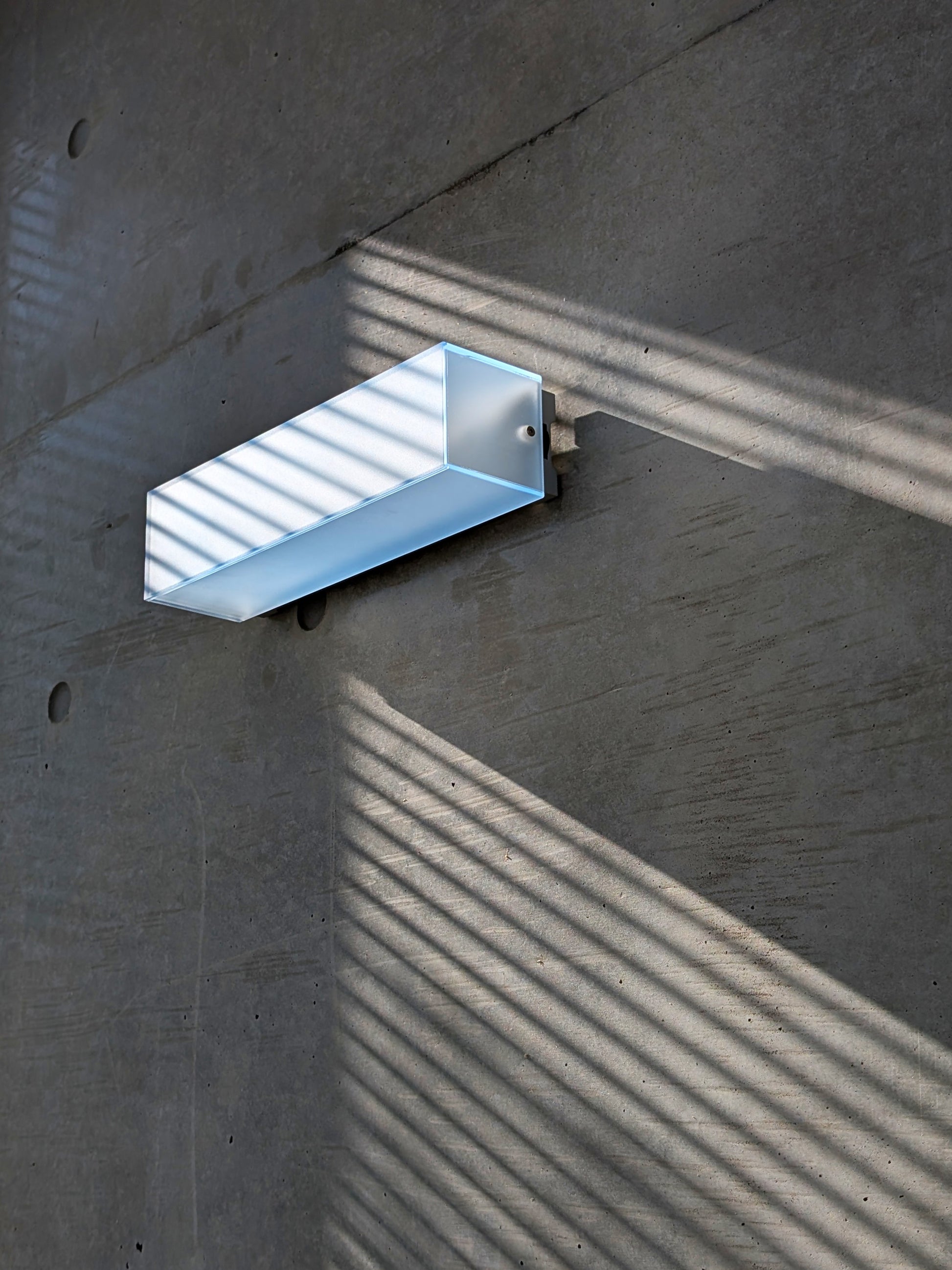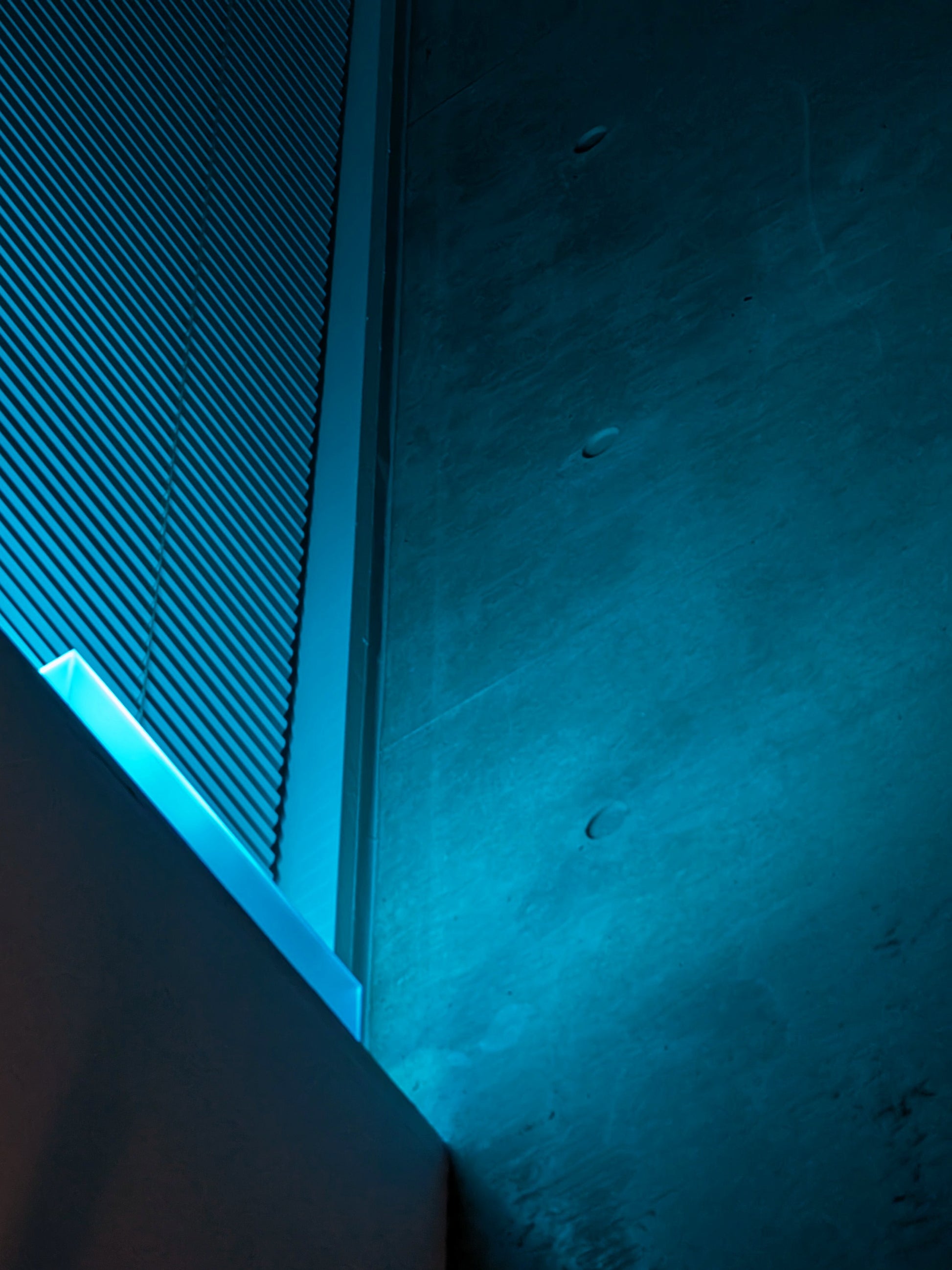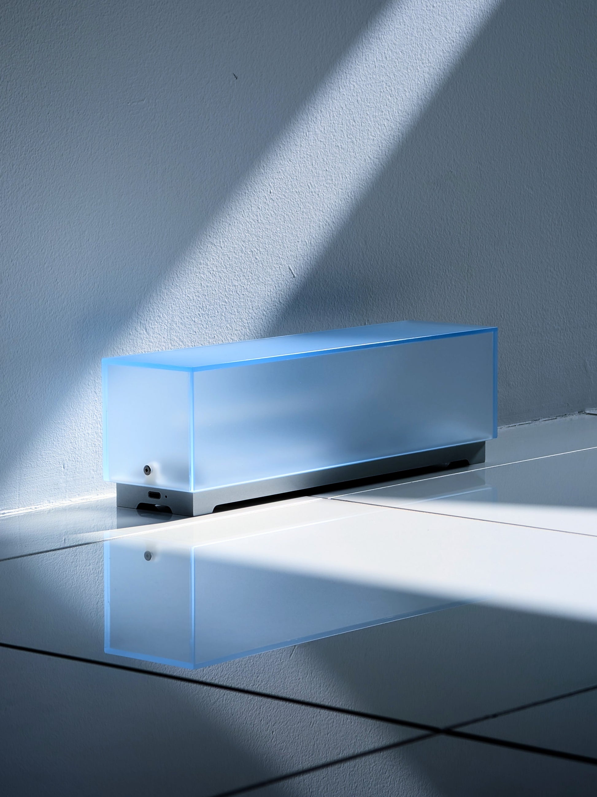 この作品は「As Long As The Night Lasts」が夕焼け空の色を表現していることに呼応し、青空の作用を夜の室内にももたらすことを目指し制作されました。GPSに同期し日の入りで点灯し、夜が更けるにつれ片側から消えていき、日の出と共に消灯します。